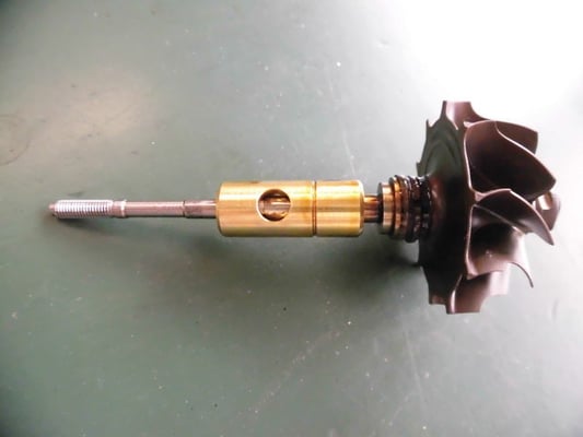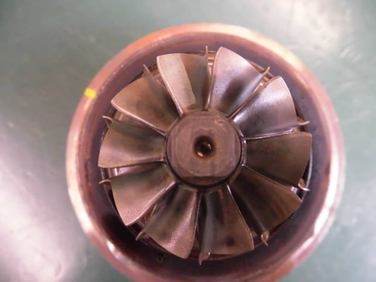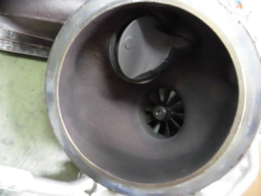 ・タービンホイルはベーシックなラジアルフローだがGarrettには珍しい10枚翼で水掻きは少な目でカットバックも無い。