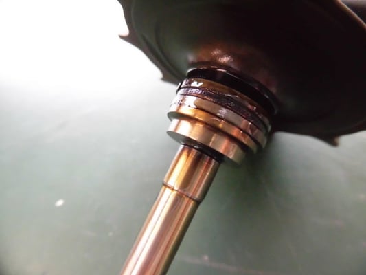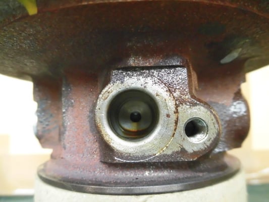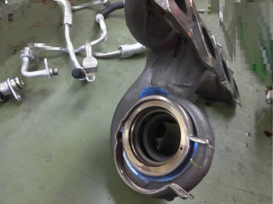 ・ベアリングハウジングは一般的なGarrettの形状とは異なり、オイルインレットパイプが上面に、下面はオイルアウトレットパイプが配管され、水のイン、アウトパイプ同一側面に配管される。