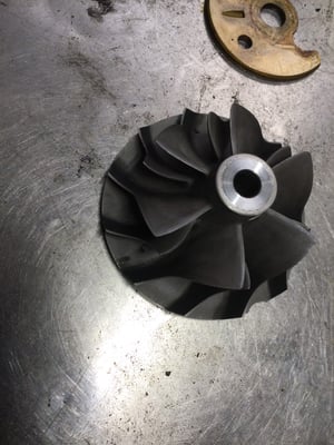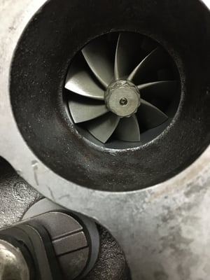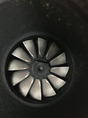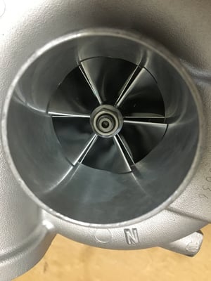 ・タービンホイールの排気出口径を変えずに翼枚数を9枚に減らして排圧の上昇を抑え、出力向上させるハイフロー加工も可能です。タービンハウジングの追加工費用が発生しません。
