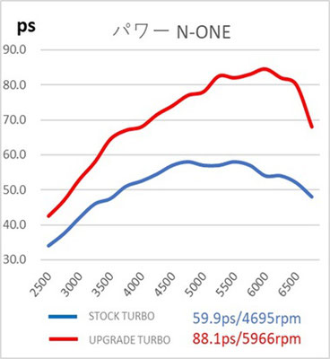 本製品は、実績のあるS660用アップグレードターボと同じコンプレッサーホイールとタービンホイールを採用しており、高回転域でのパワーの伸びを低回転域での走りを犠牲にすることなく実現しています。S660用アップグレードターボとは異なり純正同様の電動アクチュエーターを採用しているため、ECUとの親和性が高く、より細かいブースト制御が可能です。